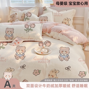 牛奶绒四件套加绒加厚冬季珊瑚绒被套2025新款床上