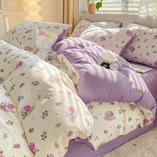 开学季100%纯棉全棉四件套小清新床上用品小花被套