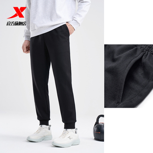 特步加绒卫裤男士冬季运动裤针织保暖裤直筒裤子跑步通