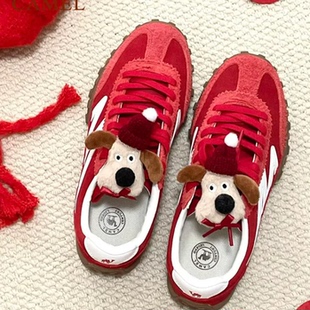 骆驼山海运动鞋秋冬女款红色鞋子休闲女鞋百搭复古德训