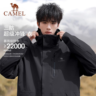 [羽绒内胆]骆驼户外黑色冲锋衣女冬款三合一排骨羽绒